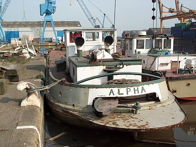 From Terry Thwaite ..... "Alpha", the docks board maintenance boat , listed as a Tug. My uncle Dan was engineer on her when she was fairly new and she was built primarily for towing A&C boats up the Barnsley Canal from its junction with the Calder top side of Haigh cut end (Broad Reach Lock), or at least that's how I remember listening to the old fellow and Dan telling yarns to that effect.